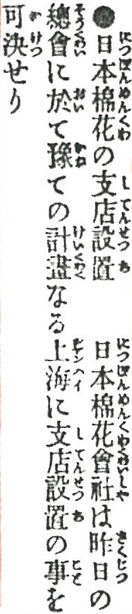 【日本綿花】上海支店設立を伝える記事(大阪朝日新聞/1903年7月12日)