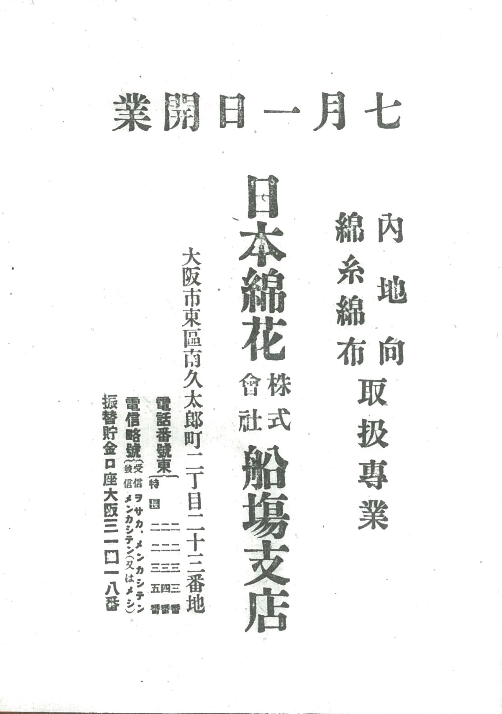 【日本綿花】船場支店開業の広告(大阪朝日新聞/1916年7月1日)