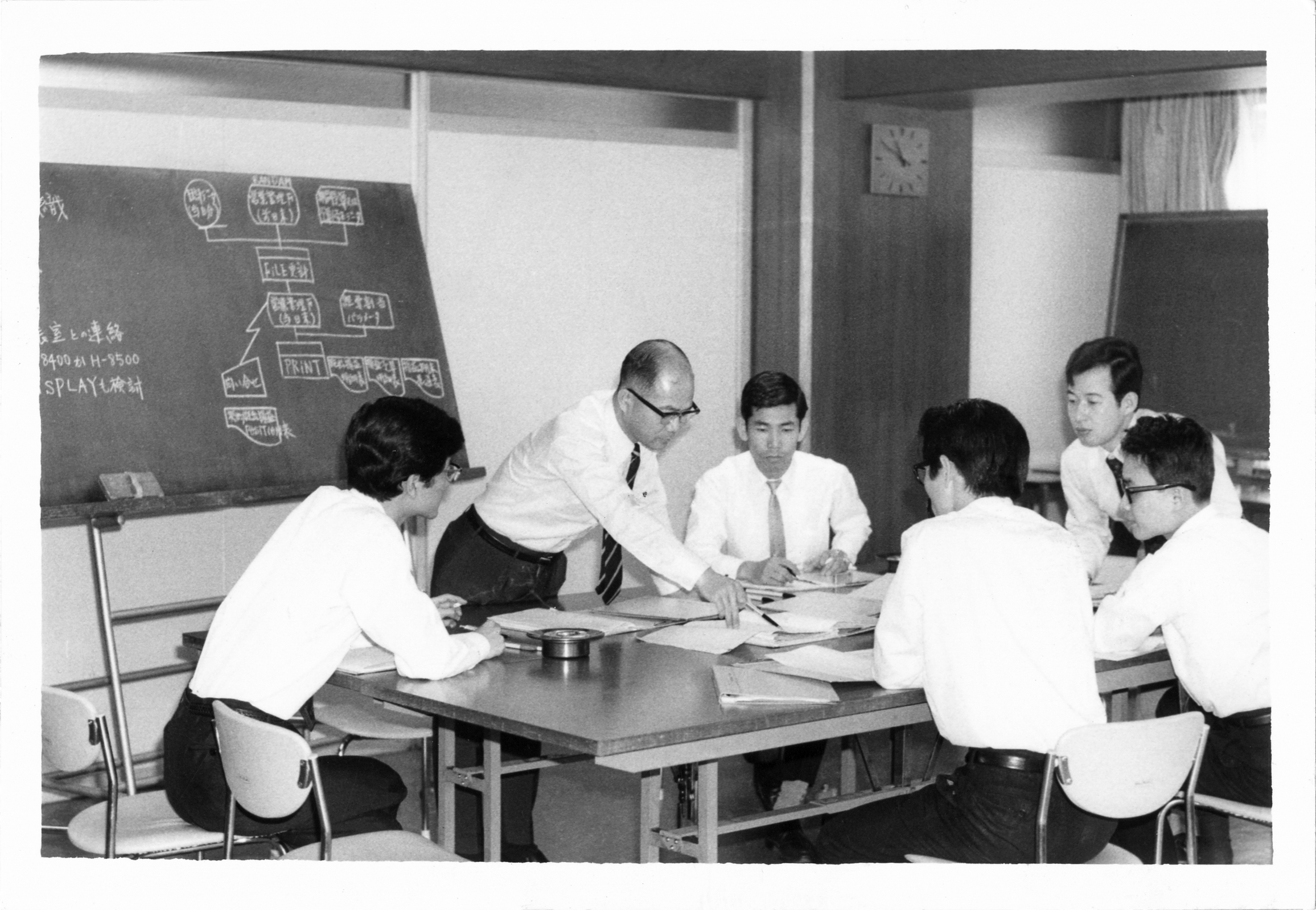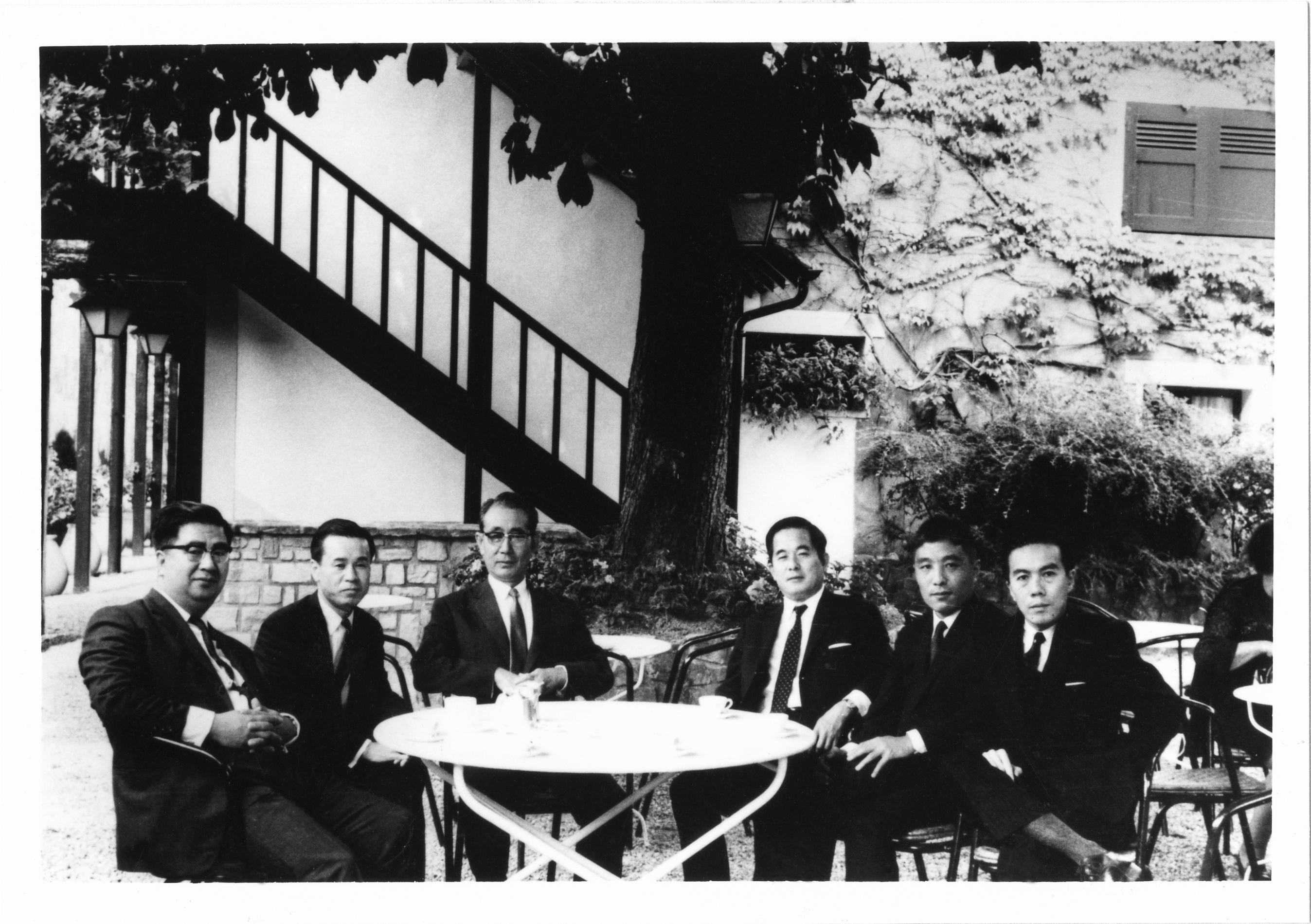 【日綿實業・ニチメン】パリ訪問中の神林社長(左から3人目)と欧州各支店長(1969年9月)