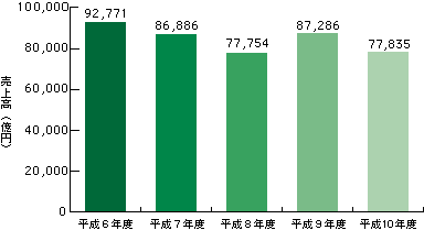 平成10年度の売上高につきましては、7兆7,835億円と前期比9,452億円 (10.8%) の減少となりました。