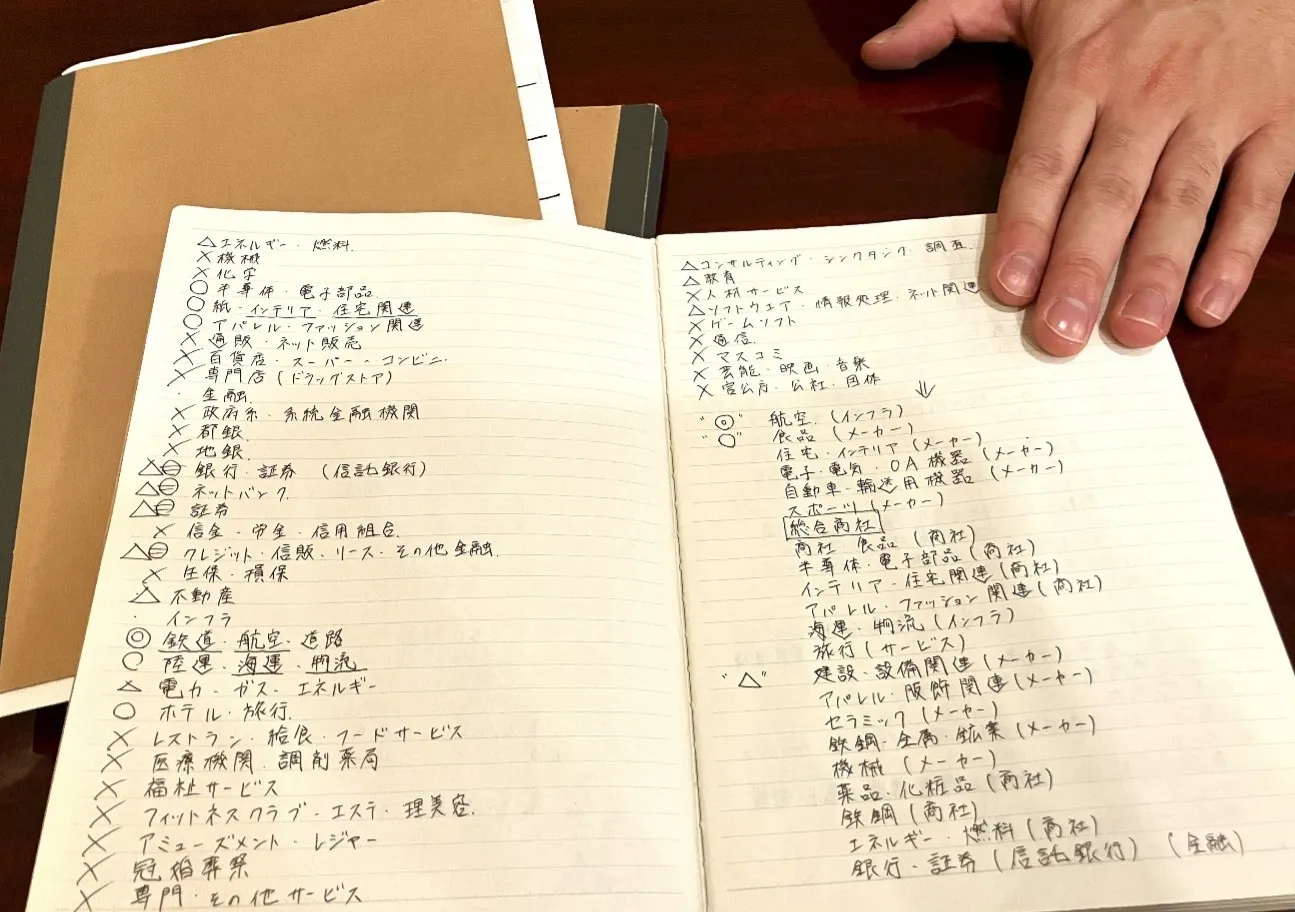 私の相棒であるこのノートを見てください!ノートの◎と○をメインに企業研究を行いました。
