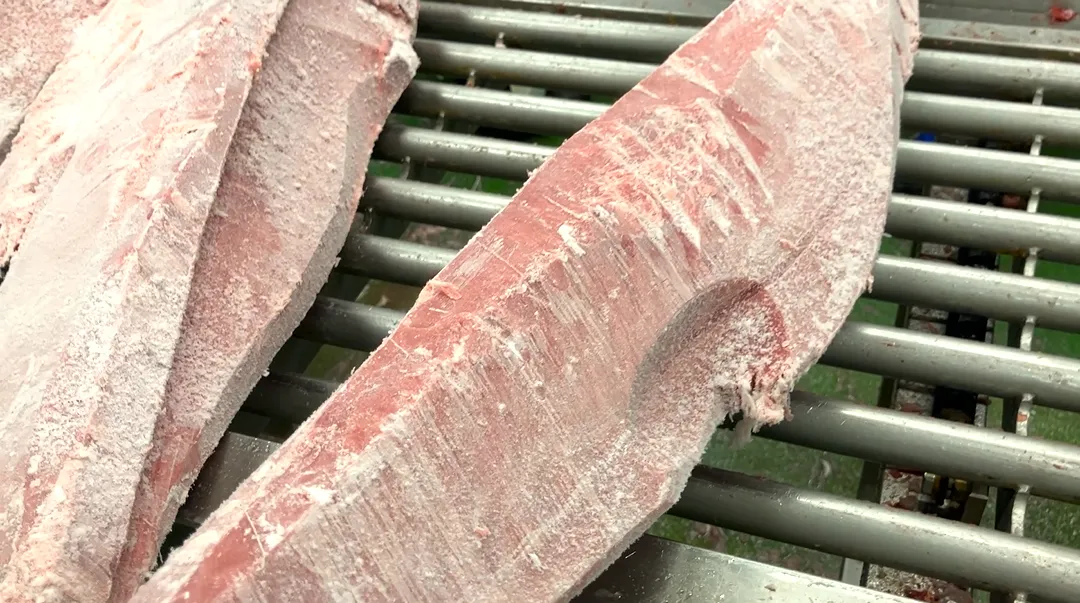 加工後のマグロは、波打ったような緩やかな凹凸が身に見られますが、これは綺麗に肋骨のみ取り除けた証拠。