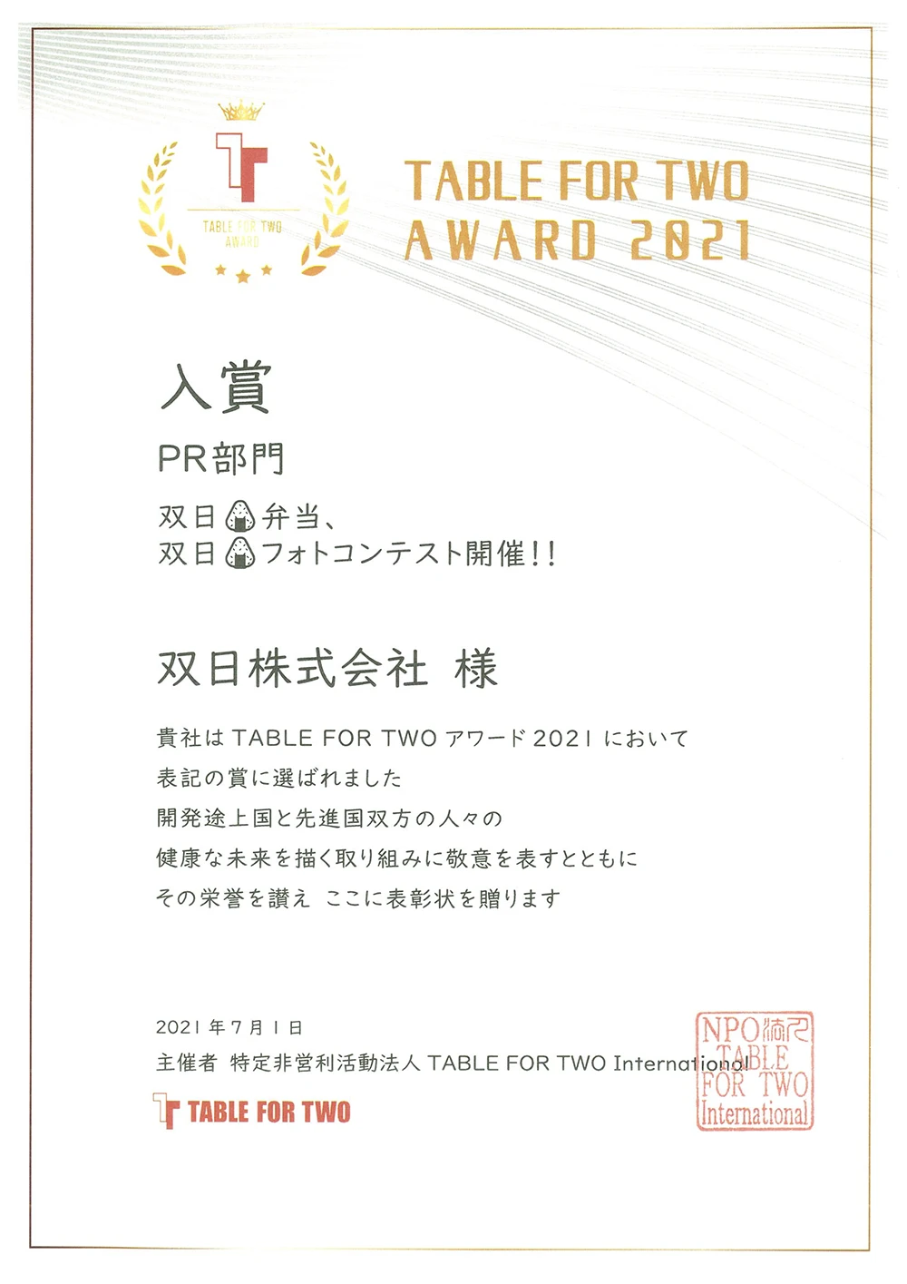 双日はTABLE FOR TWOアワードにおいて過去3回受賞し、そのユニークな取り組みは注目を浴びています。