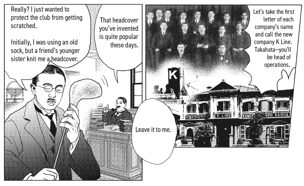Takahata invents a golf club headcover and goes on to become known as the father of golf in Japan after publishing Japan’s first golf rule book. Takahata is even enlisted to organize an exhibition golf tournament for the Japanese emperor’s visit to London.